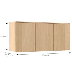 Ele é produzido em MDF 15 mm com acabamento fosco em sua superfície. Ele possui 3 portas e um amplo espaço interno.