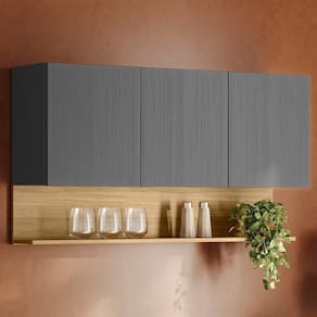 Armário Aéreo para quem busca praticidade na organização da cozinha. Produzido em MDP (15mm) com acabamento em pintura UV texturizada. Conta com 03 portas passantes (sem puxadores), dobradiças metálicas e 01 nicho inferior. Este produto será entregue em 01 volume.