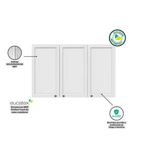 O Armário Aéreo 3 Portas Unna da Poliman Móveis é um produto elegante, com amplo espaço interno ideal para otimizar espaço podendo ser utilizado sozinho ou como complemento da Cozinha Modulada Unna. São 3 portas de bater com prateleira interna, dobradiças reforçadas de 35mm, puxadores modelo retro em polímero com acabamento em alta cobertura para deixar seu móvel ainda mais elegante. Estrutura em MDP Perffect Touch de maior resistência e com proteção Bacterban que inibe a proliferação de fungos e bactérias na superfície do móvel, as portas são almofadadas/molduradas em MDF inspirada nas clássicas cozinhas americanas. Produto ecologicamente correto com embalagens preparadas para evitar avarias e permitir que o produto chegue em perfeito estado em sua casa. Perfeita combinação com os mais variados ambientes. Qualidade que só a Poliman oferece em seus produtos.