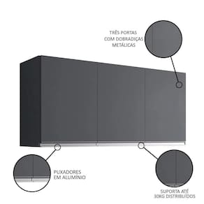 Armário Aéreo 3 Portas 120cm Debora - Pallazio Cor Cinza