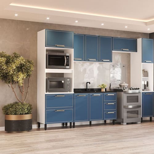 O Armário Aéreo Amara da Politorno Móveis, com 3 portas, é perfeito para quem busca mais espaço e organização na cozinha sem comprometer a circulação do ambiente. Fabricado em MDP/MDF, ele garante resistência e durabilidade, enquanto o acabamento usinado confere um toque moderno e sofisticado. Seu revestimento em FF/UV protege contra umidade e facilita a limpeza, tornando o dia a dia mais prático. Os puxadores em alumínio agregam elegância e robustez ao design. Com 66 cm de altura, 120 cm de largura e 30,5 cm de profundidade, esse armário aéreo oferece amplo espaço interno para armazenar louças, utensílios e mantimentos, unindo funcionalidade e estilo para compor cozinhas bem organizadas e sofisticadas. Acabamento da Prateleira: Pintura UV Escala de Brilho da Prateleira: Semi-Fosco Acabamento da Porta: Pintura UV Escala de Brilho da Porta: Semi-Fosco Material do Puxador da Porta: Alumínio Ambiente Principal: Cozinha codigo_ean: 7900288058348 Complexidade da Montagem: Média: pode ser montado por mais de uma pessoa e/ou necessite de maior conhecimento para montagem Cor: Branco/Azul Cor do Produto: Branco/Azul Cor Interna: Branco Escala de Brilho: Semi-Fosco Itens Inclusos: 1 Armário Aéreo Desmontado, 1 Kit de Ferragens, Manual de Montagem e Termo de Garantia Linha ou Coleção: Amara Manual de Especificação Técnica: https://product-hub-prd.madeiramadeira.com.br/977193/documents/4ecd1d93-ad14-4d3a-bd67-1c9e9bb745ee2673432622417388732680777.pdf Manual de Montagem e Instalação: https://product-hub-prd.madeiramadeira.com.br/977193/documents/042ebe70-70a4-4ec3-88e1-018ffed9c06a2673431622417388732663245.pdf Marca: Politorno Material da Dobradiça/Corrediça da Porta: Metálica Material da Porta: MDF/MDP Material da Prateleira: MDF/MDP Necessita Montagem: Sim Origem do Produto: Nacional Peso: 20,29 kg Peso Máximo por Prateleira: 5 kg Possui Espelho: Não Possui Possui Pés: Não Possui Portas: Sim Possui Prateleiras: Sim Produto Montado: Sim Recomendações de Uso, Manutenção e Limpeza: Utilize um pano macio umedecido com água e sabão neutro, seguido de pano seco. Não utilize produtos químicos ou abrasivos para limpeza, pois estes danificam o revestimento do móvel. Sapatas Niveladoras: Não Sistema de Montagem: Acompanha bucha e parafuso para fixação na parede Suporta Até (kg): 10 kg Tipo de Dobradiça/Corrediça da Porta: Soft close Tipo de Puxador da Porta: Externo undefined: 977194