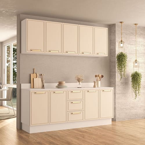 O Armário Aéreo Amara da Politorno Móveis, com 3 portas, é perfeito para quem busca mais espaço e organização na cozinha sem comprometer a circulação do ambiente. Fabricado em MDP/MDF, ele garante resistência e durabilidade, enquanto o acabamento usinado confere um toque moderno e sofisticado. Seu revestimento em FF/UV protege contra umidade e facilita a limpeza, tornando o dia a dia mais prático. Os puxadores em alumínio agregam elegância e robustez ao design. Com 66 cm de altura, 120 cm de largura e 30,5 cm de profundidade, esse armário aéreo oferece amplo espaço interno para armazenar louças, utensílios e mantimentos, unindo funcionalidade e estilo para compor cozinhas bem organizadas e sofisticadas.