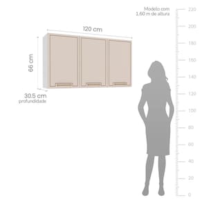 Armário Aéreo 3 Portas 120cm X 66cm X 30,5cm Branco/Creme - Bege