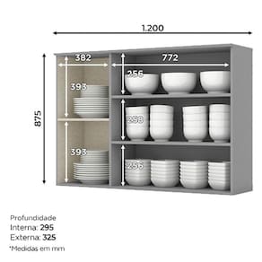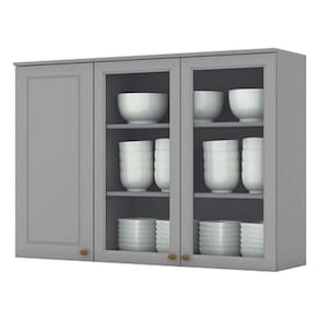 Armário Aéreo 3 Portas com Vidro 120 cm Americana Cinza – Henn