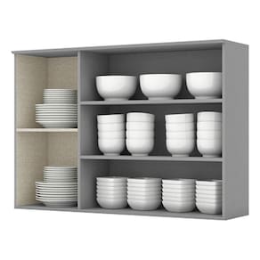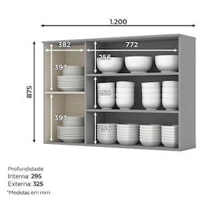Armário Aéreo 3 Portas com Vidro 120 cm Nova York Cinza Henn