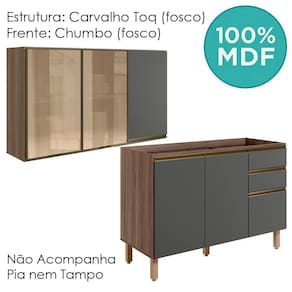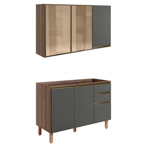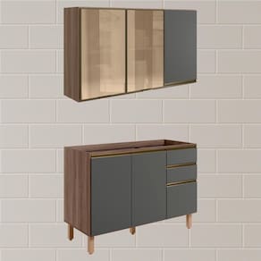Conjunto de Armário Aéreo 3 Portas e Balcão sem Tampo para pia, funcional e moderno, ideal para composições que otimizam o espaço com elegância. Fabricado 100% em MDF, com estrutura de 15mm, forro de fundo de 3mm e acabamento em pintura UV (fosco ou brilho). O Conjunto é composto por 1 armário aéreo com 2 portas de vidro reflecta e 1 em MDF com dobradiças de 35mm com amortecedor, que garantem fechamento suave e silencioso, além de puxadores em perfil de alumínio e 2 prateleiras internas. O Balcão conta com 3 gavetas com corrediças telescópicas, 1 prateleira interna e 2 portas com dobradiças de 35mm com amortecedores. Os 5 pés possuem altura de 15,5cm com regulagem adicional de 1,5cm, garantindo estabilidade em qualquer piso. Não acompanha tampo nem pia. Estes móveis chegarão em sua casa separados em 04 volumes.