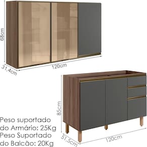 Peso Suportado do Balcão: 20Kg (12Kg gavetas e 8Kg prateleira)