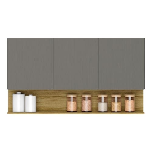 Armário 3 Portas Com Nicho Inferior 1,20 Line Cor ;Cinza Gris Freijó Kits Paraná