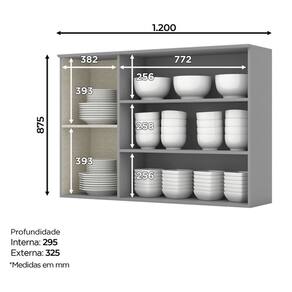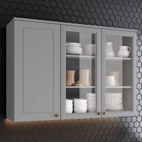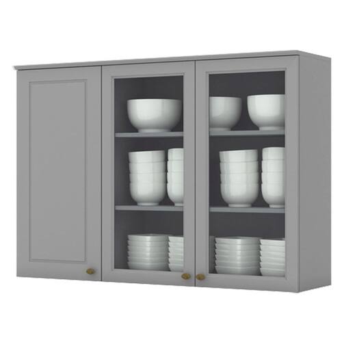 Armário Aéreo 3 Portas com Vidro de 120 cm, cozinha provençal seu conceito é inspirado nas clássicas cozinhas estilo americano. Estrutura 100% MDF de 15mm. Conta com 3 portas sendo 2 com vidro, todas equipadas com dobradiças Metálicas 35mm com Amortecimento para um fechamento suave, frentes com usinagem em baixo relevo. Puxador metal zamac dando estilo e elegância para ao móvel. Conta com 3 prateleiras cada uma suportando até 8kg. A pintura UV texturizada proporciona um acabamento sofisticado e fácil de limpar, com espaço amplo para colocar seus mantimentos e utensílios com facilidade. Este móvel chegará na sua casa separado em 01 volume.