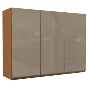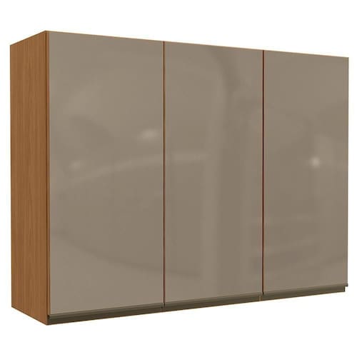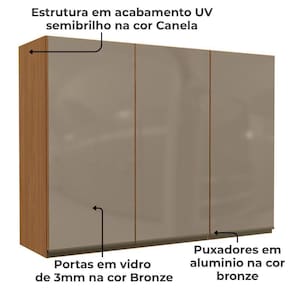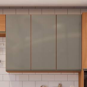 Design que une estética, robustez e eficiência para seu dia a dia. O Armário aéreo é um móvel suspenso, produzido 100% em MDP de 15 mm com acabamento em pintura texturizada UV (fosco) ou (semibrilho). Possui 3 portas em vidro de 3 mm equipadas com dobradiças metálicas, 4 prateleiras internas e puxadores em alumínio. Este móvel chegará na sua casa separado em 02 volumes.