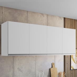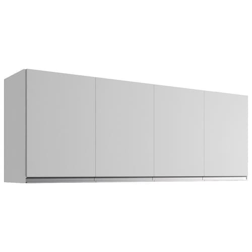 Armário Aéreo 4 Portas, compacto e funcional trazendo praticidade para sua cozinha. Estrutura em MDP (12/ 15 mm - fundo 3 mm). Composto por portas com dobradiças metálicas, 1 prateleira interna e puxadores em alumínio e acompanha kit para fixação na parede (verificar riscos de perfurações). Produto será entregue em 01 volume.