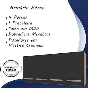 Armário Aéreo Mara 4 Portas e Balcão Anitta 120 cm, é ideal para quem busca qualidade e sofisticação para organizar sua cozinha. Estrutura em MDP de 12 e 15 mm, acabamento em pintura UV. Kit com 01 balcão para pia de 120 cm de 3 portas, 1 prateleira e 1 gaveta e 01 Armário Aéreo de 120 cm, com 04 portas articuladas, 01 prateleira para utensílios, com dobradiças metálicas, puxadores em plástico cromado, acompanham pés fixos que garantem a firmeza que o móvel precisa. Produzido com controle de qualidade e com excelente acabamento. Este móvel chegará em sua casa separado em 02 volumes.