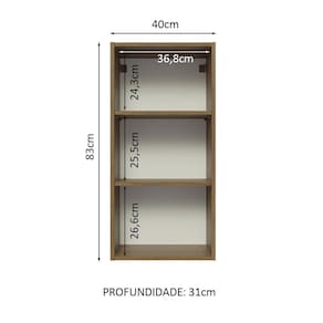 - Um (1) aéreo de 83 cm de altura x 40 cm de largura x 31 cm de profundidade com um (1) porta e uma (1) prateleira interna.