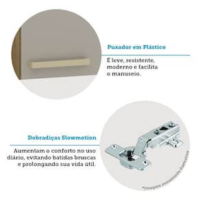 Desenvolvida com materiais de excelência, a Cozinha Isis oferece excelente distribuição de espaço interno. É estruturada em 100 MDP e possui dobradiças slow motion com amortecedor incorporado para fechamento suave das portas. Conta com puxadores tipo Aste em Plástico Gold dando um toque especial de classe e elegância.