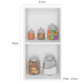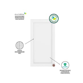 Características: Porta de bater almofadada/moldurada em MDF 4mm, dobradiças de 35mm, prateleira interna, puxador retrô em polímero metalizado.