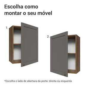 O acabamento de alta resistência da estrutura é no tom amadeirado Rustic e das portas em Cinza. Possui uma textura suave ao toque, e o destaque vai para os puxadores ponto em ouro envelhecido, feitos com metal resistente. Outro diferencial está no detalhe chanfrado das frentes, que forma molduras elegantes e dá profundidade ao design, refletindo o estilo americano com um toque moderno.