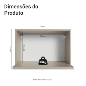 O Armário Aéreo com nicho para micro-ondas ou forno elétrico da linha Nice da Madesa é a solução ideal para integrar os eletrodomésticos ao projeto da sua cozinha com praticidade e bom gosto. O espaço é projetado para acomodar com segurança aparelhos de uso frequente, otimizando o ambiente e liberando espaço na bancada.