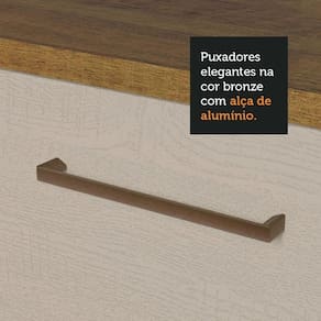 Fabricado com materiais de alta qualidade, conta com puxadores com alça de alumínio e dobradiças com amortecimento, que proporcionam um fechamento suave das portas.