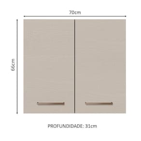 Este é o Armário Aéreo de 70 cm com duas portas da linha Agata da Madesa. Muito moderno, se destaca também pelo ótimo espaço interno disponível. Dividido por uma prateleira, é perfeito para organizar os utensílios da cozinha.