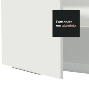 Conta com puxadores slim em alumínio e dobradiças metálicas com amortecimento que proporciona um fechamento suave. O espaço interno é dividido por uma prateleira, e é ótimo para organizar os mantimentos e utensílios.