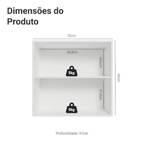 Com o Armário Aéreo de 70 cm com 2 Portas da Linha Vik da Madesa, você aproveita todo o espaço da sua cozinha. Seus dois compartimentos internos oferecem organização prática para utensílios, louças ou mantimentos, proporcionando total aproveitamento do espaço.