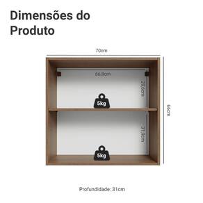 Com o Armário Aéreo de 70 cm com 2 Portas da Linha Vik da Madesa, você aproveita todo o espaço da sua cozinha. Seus dois compartimentos internos oferecem organização prática para utensílios, louças ou mantimentos, proporcionando total aproveitamento do espaço.