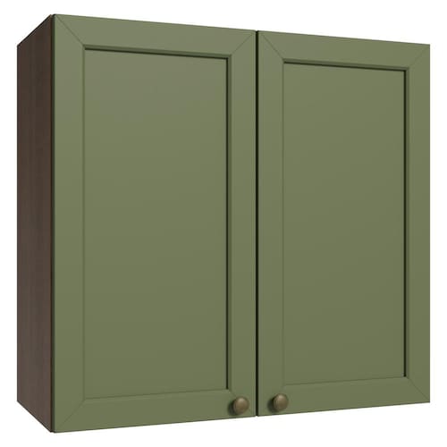 O acabamento de alta resistência da estrutura é em tom amadeirado Rustic e das portas em Verde. Possui uma textura suave ao toque, trazendo leveza e sofisticação ao ambiente. O destaque vai para os puxadores ponto em ouro envelhecido, feitos com metal resistente, que adicionam personalidade e um charme único. Outro diferencial está no detalhe chanfrado das frentes, que forma molduras elegantes e dá profundidade ao design, refletindo o estilo americano com um toque moderno.