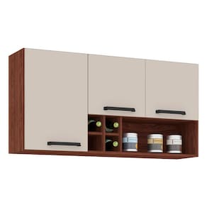 Armário Aéreo Ametista 3 Portas e 4 Garrafas 120 cm Nogueira Off White - Kits Paraná