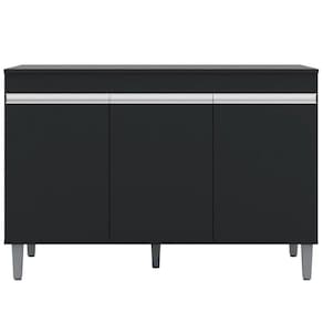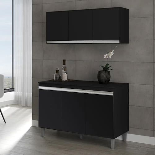 A correria de todo dia acaba por desorganizar sua cozinha? Tá faltando espaço para colocar suas coisas? Bem, isso pode melhorar com oArmário e Balcão Gabinete de Pia sem Tampo 120cm 3 Portas Manu Preto - AJL Móveis.