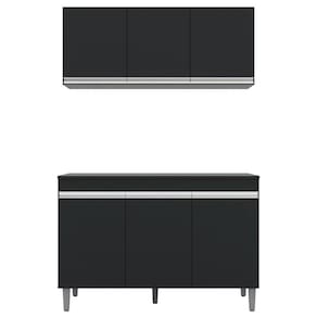 A correria de todo dia acaba por desorganizar sua cozinha? Tá faltando espaço para colocar suas coisas? Bem, isso pode melhorar com o Armário e Balcão Gabinete de Pia sem Tampo 120cm 3 Portas Manu Preto - AJL Móveis.