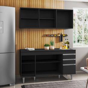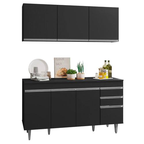 Armário Aéreo Argélia e Balcão Gabinete de Pia com Tampo Marrocos 150cm Preto - Lumil