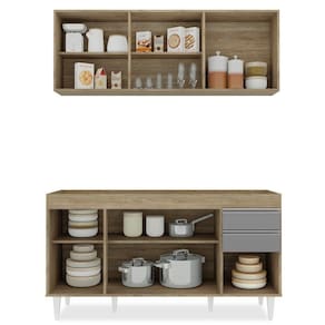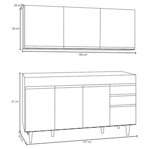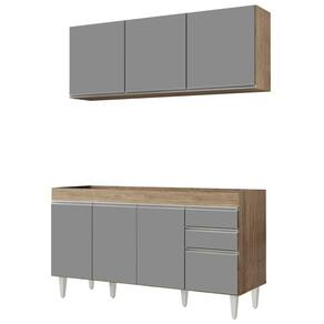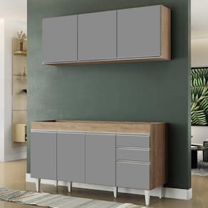 Organização e funcionalidade são as palavras que definem esse jogo de Armário Aéreo e Balcão Gabinete sem Tampo Castanho/Cinza, da Lumil Móveis. Afinal, são as características indispensáveis para quem busca uma rotina na cozinha de um jeito mais versátil.Mas as qualidades desse aéreo e gabinete de pia não param por aqui, pois a medida de 150cm é perfeita para uma cozinha compacta, sem deixar de lado a organização, já que conta com prateleiras internas para você dispor panelas, louças e mantimentos, enquanto as duas gavetas deixam os utensílios de cozinha sempre ao alcance das mãos.Quanto ao acabamento e estrutura também não há o que questionar, porque tanto o armário aéreo quanto o balcão de pia são fabricados em MDP 15mm com acabamento BP, enquanto os puxadores em alumínio modelo cava dão um toque de modernidade.Gostou? Então essa é a hora de dar um up na sua cozinha e agregar funcionalidade de um jeito simples e com o melhor custo-benefício. Adicione agora mesmo ao seu carrinho.EspecificaçõesDimensões do Produto (L x A x P)Aéreo Argélia: 147 cm x 54 cm x 28 cm.Balcão Marrocos: 150 cm x 81 cm x 50 cm.Peso: 70 Kg.** NÃO ACOMPANHA TAMPO/PIA.Características do ProdutoMaterial da Estrutura: MDP 15 mm.Material do Fundo: MDF 3 mm.Acabamento: Melamina BP.Peso Suportado: Balcão: 38 kg/Aéreo: 28 kg.Escala de Brilho: Fosco.Quantidade de Portas: 7 Portas.Material da Porta: MDP.Tipo de Porta: Convencional.Quantidade de Gavetas: 2 Gavetas.Material da Gaveta: MDP.Tipo de Puxador: Alumínio.Tipo de Corrediças: Metálicas.Possui Prateleiras: Sim.Quantidade de Prateleiras: 2 Prateleiras.Material da Prateleira: MDP.Possui Pés: Sim.Quantidade de Pés: 6 Pés.Tipo de Pés: PVC com regulagem.Acompanha Tampo/Cuba de Pia: Não.Diferenciais:- Design moderno.- Pés ajustáveis entre 17 cm a 18,5 cm.- Bordas com fita PVC.- Amplo espaço interno.Sistema de Montagem: Cavilhas/Parafusos.Manual de Montagem: Sim.Complexidade da Montagem: Média.Volumes: 2 Volumes.Conteúdo da Embalagem: 1 Balcão, 1 Aéreo.Garantia do Fabricante: 90 dias contra defeito de fabricação.Montagem: Recomendamos que seja feita por um profissional.Recomendação de Limpeza: Utilize pano úmido.Observações importantes:- Produto para uso residencial em ambiente interno, não devendo ficar exposto diretamente ao sol, calor e umidades excessivas.- Pode haver alguma diferença de tonalidade entre a imagem e o produto real, por conta do tratamento de imagens e a calibração de cores do seu monitor.- As imagens são meramente ilustrativas, não acompanham objetos de decoração e eletrônicos.- Confira o estado da embalagem, não devendo assinar o comprovante em caso de danos.- Não asseguramos, no ato da entrega, por subir escadas/elevadores, pelo transporte por guincho em apartamentos ou montagem, desmontagem e instalações. Eventuais despesas são por conta do comprador.- Confira as dimensões do produto e certifique-se de que passará normalmente por supostos elevadores, portas, escadas e/ou corredores de sua residência.