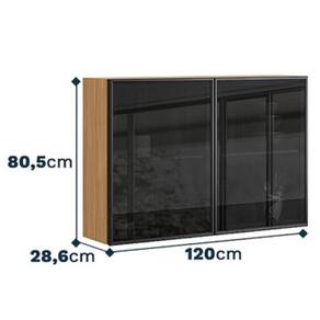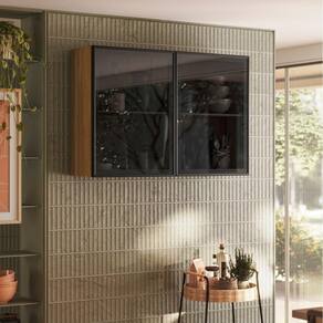 Armário Aéreo Art 2 Portas Vidro 120 cm Freijó Preto Kit's Paraná