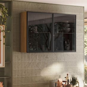 Armário Aéreo Art 6003 2 Portas de Vidro 120 cm Freijó ABS Preto – Kits Paraná