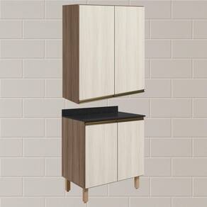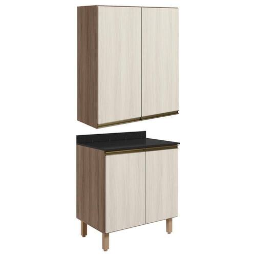 Conjunto de Armário Aéreo e Balcão com Tampo para cozinha, funcional e moderno, ideal para composições que otimizam o espaço com elegância. Fabricado 100% em MDF, com estrutura e tampo de 15mm e forro de fundo de 3mm, o conjunto é composto por 1 armário aéreo com 2 portas com dobradiças de 35mm com amortecedores, que garantem fechamento suave e silencioso, além de puxadores em perfil de alumínio e 1 prateleira interna, e 1 balcão com tampo que conta com 2 portas, 1 prateleira interna, puxadores em perfil de alumínio e 4 pés com altura de 15,5cm e regulagem adicional de 1,5cm, assegurando estabilidade em diferentes tipos de piso. Estes móveis chegarão em sua casa separados em 05 volumes.