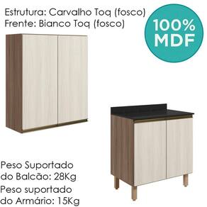 Peso Suportado do Balcão: 28Kg (20Kg tampo, 08Kg prateleira)