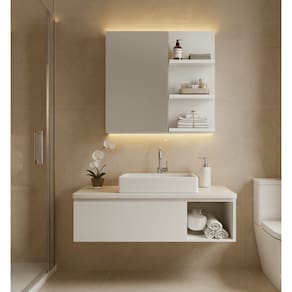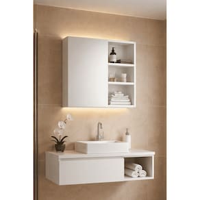 O Lumi Lu é o módulo superior ideal para deixar o banheiro mais organizado e moderno. Possui 1 porta para guardar itens de higiene e nichos laterais com prateleiras para acomodar objetos de uso diário e decoração.