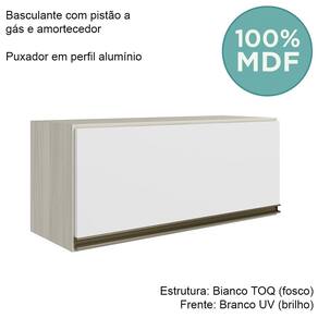 Armário Aéreo Basculante para cozinha desenvolvido para composições modernas e funcionais. Fabricado 100% em MDF, com estrutura de 15 mm e forro de fundo de 3 mm. Além disso conta com pistão a gás e amortecedor, que garantem fechamento suave e silencioso, mantendo a porta aberta em um ângulo ideal, facilitando o acesso. O puxador em perfil de alumínio completa o produto com um visual funcional e moderno. Este móvel chegará em sua casa separado em 02 volumes.