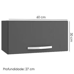 Armário Aéreo 60 cm, estilo moderno e praticidade para sua cozinha. Estrutura em MDP de 12 e 15 mm. Com porta basculante com dobradiças metálicas e pistão a gás, puxadores em plástico PVC. Acompanha kit para fixação na parede (verificar riscos de perfurações). Produto será entregue em 01 volume.