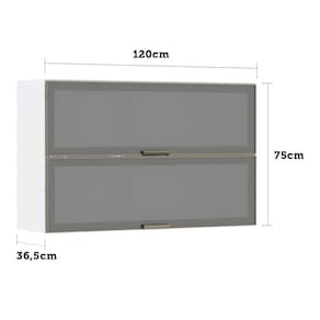 Armário Aéreo Basculante Duplo 120 Cm Branco 2 Portas Com Vidro Reflecta Prata Pérola Luciane Móveis Branco Polar Com Reflecta Prata Características: Corpo/Caixaria: MDP - Branco - F.F. Dobradiças: 35mm. Puxadores: Alumínio Gola Frontal: Vidro Reflecta Prata Porta: 2 Basculantes Prateleira: 1 Pistão a gás de 50N. com Minifix, Parafusos e cavilhas.