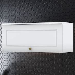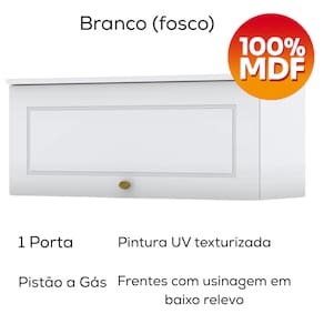 Armário Aéreo Basculante de 80 cm, cozinha provençal seu conceito é inspirado nas clássicas cozinhas estilo americano. Estrutura 100% MDF de 15mm (fundo em MDF de 3mm). 1 porta conta com pistão a gás e dobradiças Metálicas 35mm com Amortecimento para um fechamento suave, frentes com usinagem em baixo relevo. Puxador metal zamac dando estilo e elegância para ao móvel. A pintura UV texturizada proporciona um acabamento sofisticado e fácil de limpar, com espaço amplo para colocar seus mantimentos e utensílios com facilidade. Este móvel chegará na sua casa separado em 01 volume.