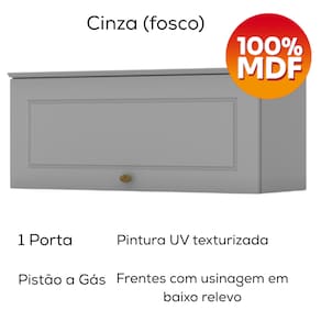 Armário Aéreo Basculante de 80 cm, cozinha provençal seu conceito é inspirado nas clássicas cozinhas estilo americano. Estrutura 100% MDF de 15mm (fundo em MDF de 3mm). 1 porta conta com pistão a gás e dobradiças Metálicas 35mm com Amortecimento para um fechamento suave, frentes com usinagem em baixo relevo. Puxador metal zamac dando estilo e elegância para ao móvel. A pintura UV texturizada proporciona um acabamento sofisticado e fácil de limpar, com espaço amplo para colocar seus mantimentos e utensílios com facilidade. Este móvel chegará na sua casa separado em 01 volume.