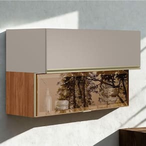 Funcional e moderno, o Armário Aéreo Basculante Proença é ideal para otimizar o espaço da cozinha com praticidade. Produzido 100% em MDF (15 mm) com acabamento em pintura UV. Conta com portas basculantes (sendo uma em vidro reflecta 3 mm) equipadas com pistão a gás e dobradiças de 35 mm. Este produto será entregue em 02 volumes.