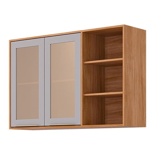 Armário Aéreo Brilhante 120cm 2 Portas com Vidro Reflecta e Nichos - MGM