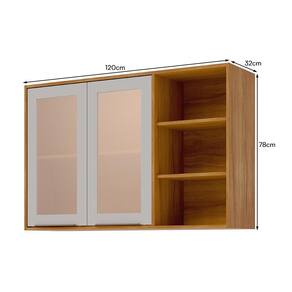 Armário Aéreo Brilhante 120cm 2 Portas com Vidro Reflecta e Nichos - MGM - Off White