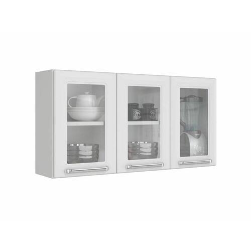 Armario Aéreo c/Vidro Cozinhas Itatiaia Luce - 3 Portas - Branco