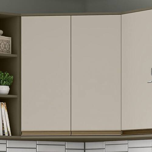 Produzida em MDF, a colecao une o que ha de mais conceitual em tendencias de design e solucoes inteligentes, permitindo a versatilidade necessaria para criar a cozinha dos seus sonhos. Com uma modulacao completa, com mais de 25 itens, que permite realizar as mais diversas composicoes de projetos, desde ambientes compactos, a espacos maiores que vao tornar sua cozinha mais pratica e muito mais bonita. As gavetas sao com corredicas telescopicas, que permite abertura maior das mesmas, facilitando o acesso aos objetos. Possui acabamento em pintura UV, revestimento que assegura qualidade e durabilidade ao produto. A linha Evelin oferece muitas possibilidades e criam combinacoes unicas, exatamente do seu jeito.