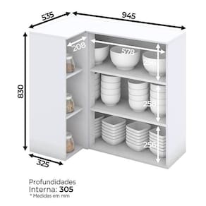 Armário Aéreo Canto Reto 1 Porta cm Americana Branco HP – Henn