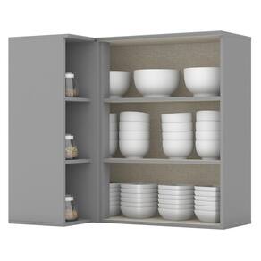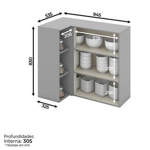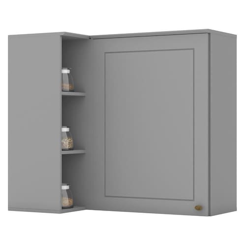 Armário Aéreo Canto Reto 1 Porta Americana Cinza - Móveis Henn Cinza Armário Aéreo Canto Reto 1 Porta Americana - Móveis Henn Os módulos da Cozinha Modulada Americana é uma linha clássica e atemporal, pensada para transformar esse ambiente no cantinho preferido do seu lar. Produzida 100% em MDF, na cor branco, uma pintura UV fosca, todas as portas e gavetas contam com usinagem em baixo relevo e os puxadores em zamac ouro velho garantem um charme extra a qualquer ambiente. ESPECIFICAÇÕES: - Estrutura 100% MDF - Acabamento UV - 1 Porta - 3 Nichos - Dobradiças de 35mm com amortecimento - Puxadores em zamac ouro velho - Usinagem em baixo relevo - Pode ser montado dos 2 lados - Amplo espaço