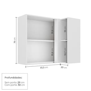 Informações Complementares: Portas de bater almofadadas/molduradas em MDF 4mm, dobradiças de 35mm, prateleira interna, nichos organizadores, puxadores retrô em alumínio.